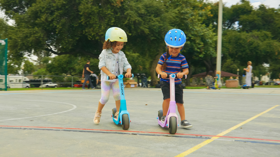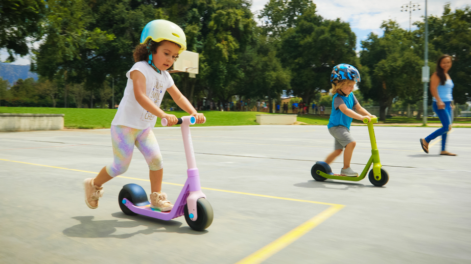Спомага за добиване на баланса и уменията необходими за каране на скутер с две колела с широк, нисък дек близко до земята.