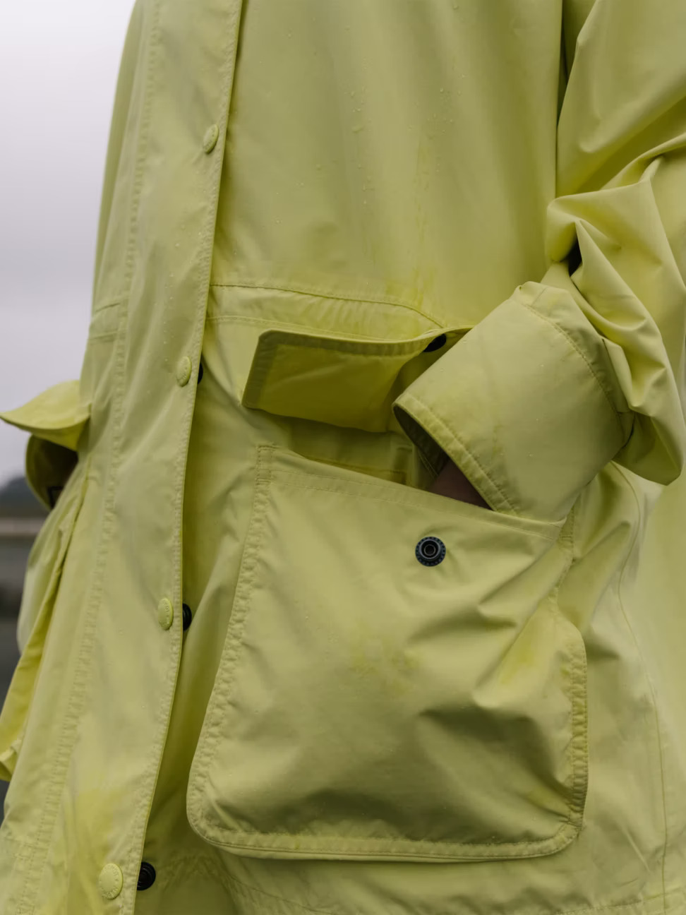 • Екологично съобразено с PFC покритие DWR (Durable Water Repellent) отблъсква водата от повърхността на тъканта за лека защита при мокро време, за да сте сухи
